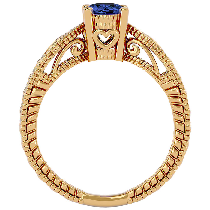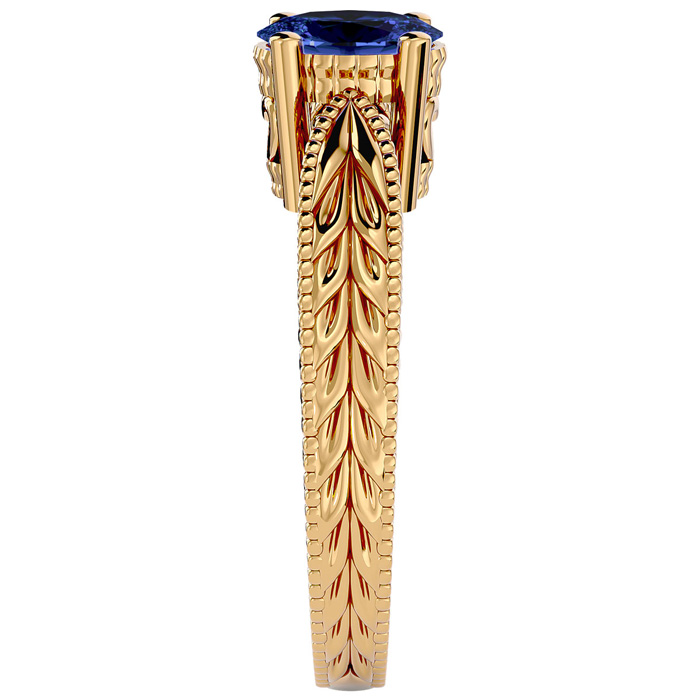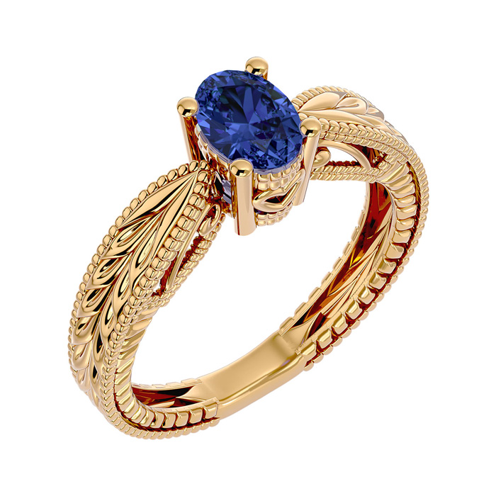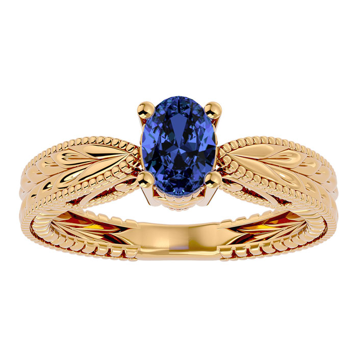 1 Carat Oval Shape Tanzanite Ring With Tapered Etched Band In 14 Karat Yellow Gold