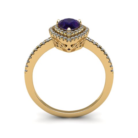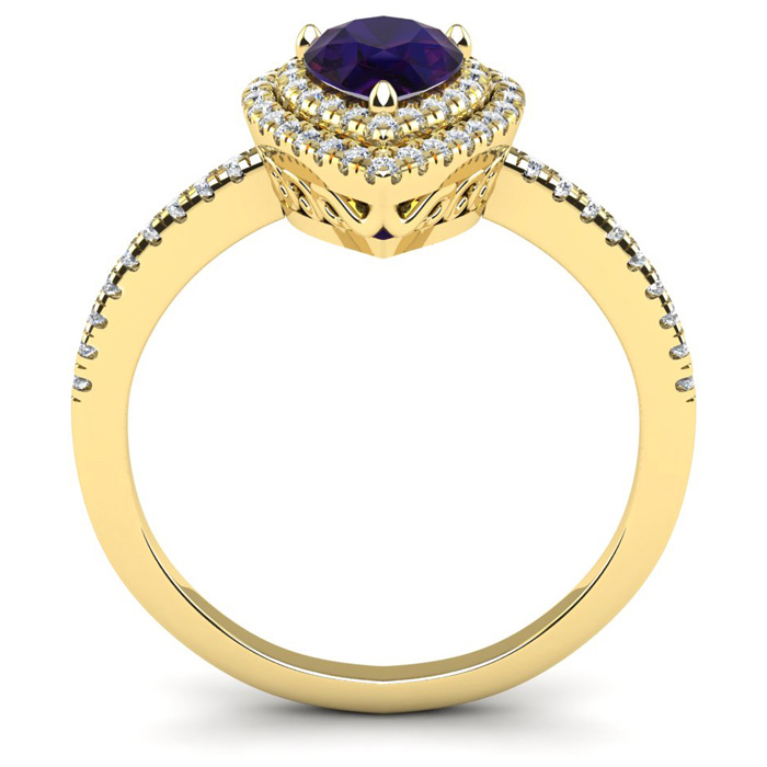 1 Carat Pear Shape Amethyst and Double Halo Diamond Ring In 14 Karat Yellow Gold