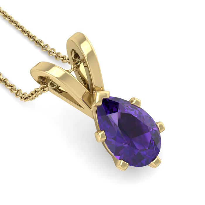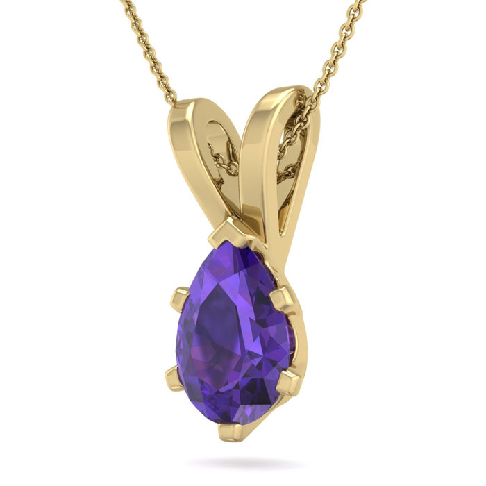 1 Carat Pear Shape Amethyst Necklace In 14K Yellow Gold Over Sterling Silver, 18 Inches