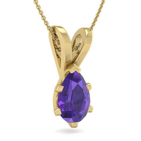 1 Carat Pear Shape Amethyst Necklace In 14K Yellow Gold Over Sterling Silver, 18 Inches