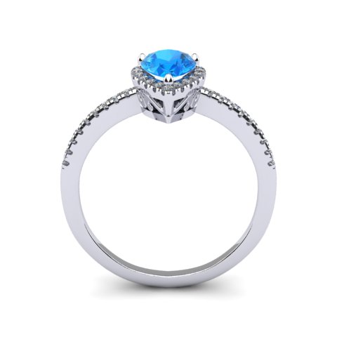 1 Carat Pear Shape Blue Topaz and Halo Diamond Ring In 14 Karat White Gold