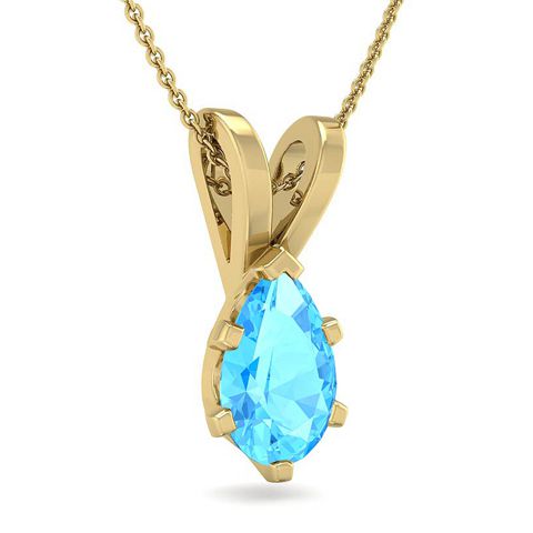 1 Carat Pear Shape Blue Topaz Necklace In 14K Yellow Gold Over Sterling Silver, 18 Inches