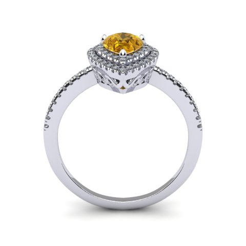 1 Carat Pear Shape Citrine and Double Halo Diamond Ring In 14 Karat White Gold
