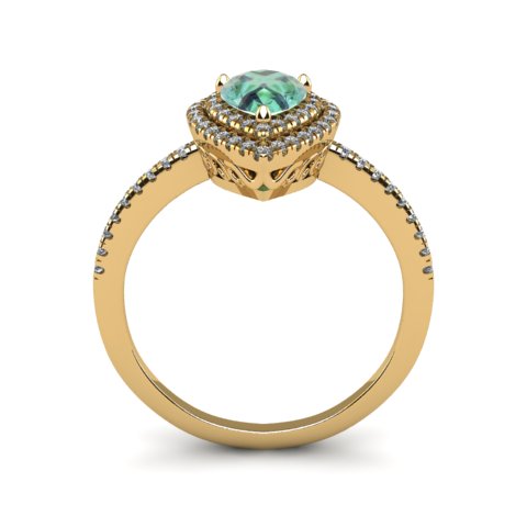 1 Carat Pear Shape Green Amethyst and Double Halo Diamond Ring In 14 Karat Yellow Gold