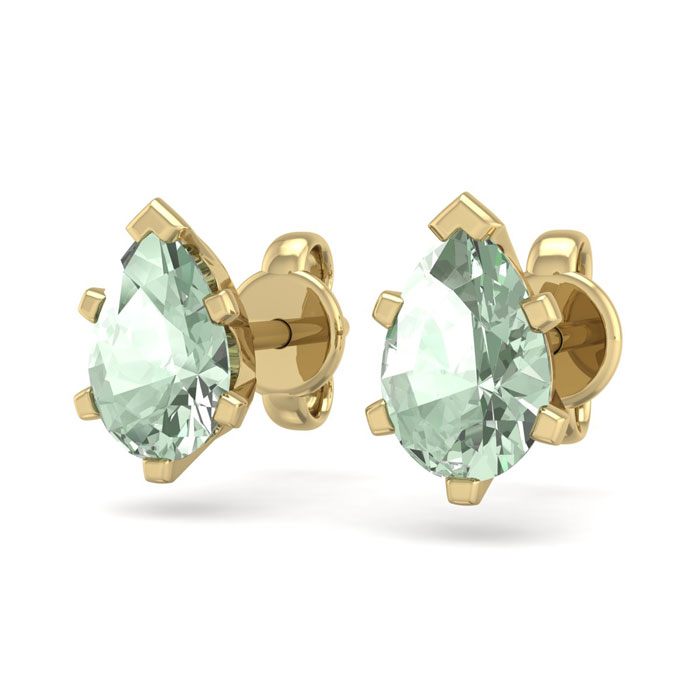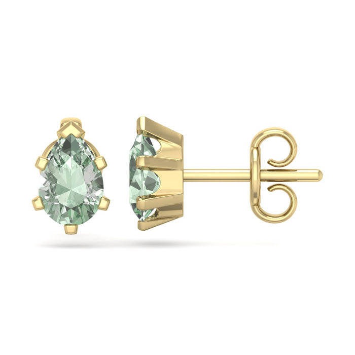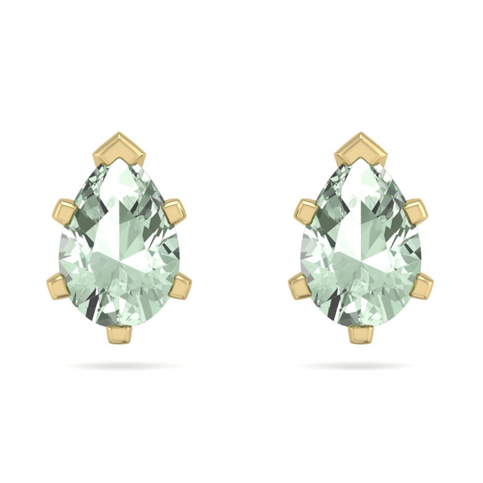 1 Carat Pear Shape Green Amethyst Stud Earrings In 14K Yellow Gold Over Sterling Silver