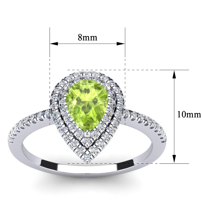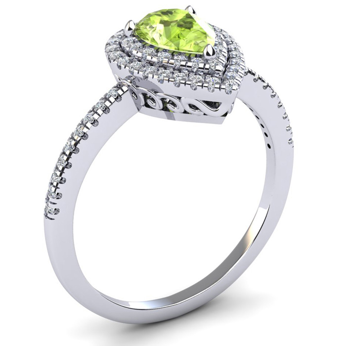 1 Carat Pear Shape Peridot and Double Halo Diamond Ring In 14 Karat White Gold