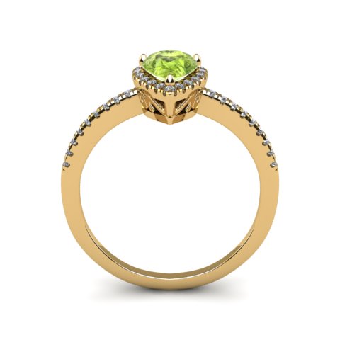 1 Carat Pear Shape Peridot and Halo Diamond Ring In 14 Karat Yellow Gold