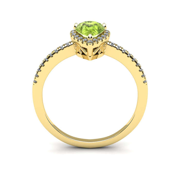 1 Carat Pear Shape Peridot and Halo Diamond Ring In 14 Karat Yellow Gold