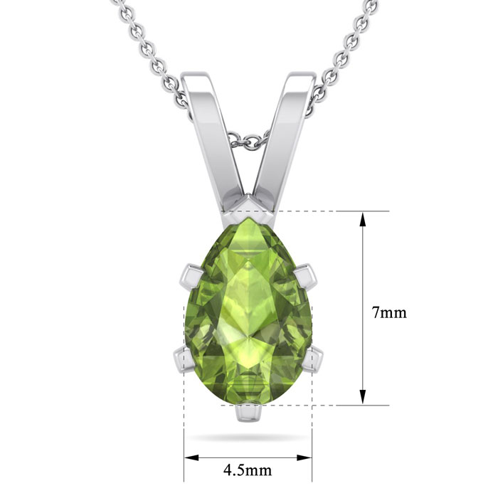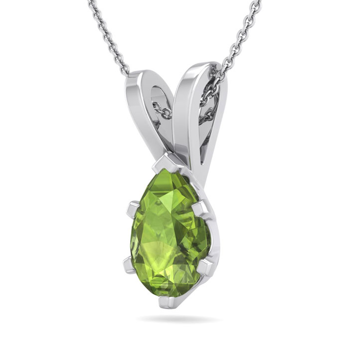 1 Carat Pear Shape Peridot Necklace In Sterling Silver, 18 Inches