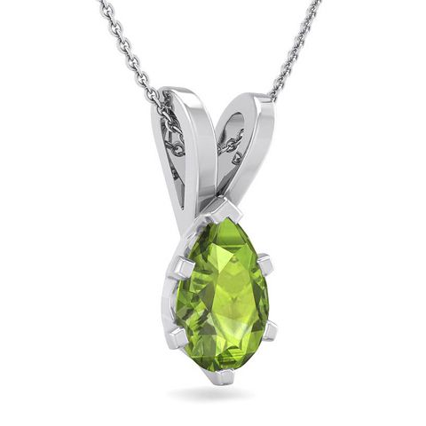 1 Carat Pear Shape Peridot Necklace In Sterling Silver, 18 Inches