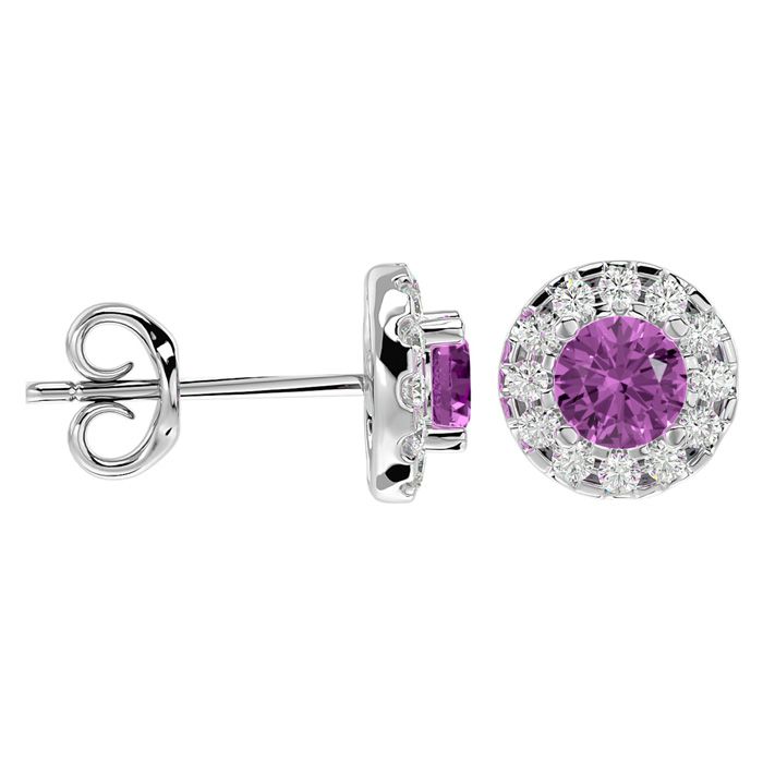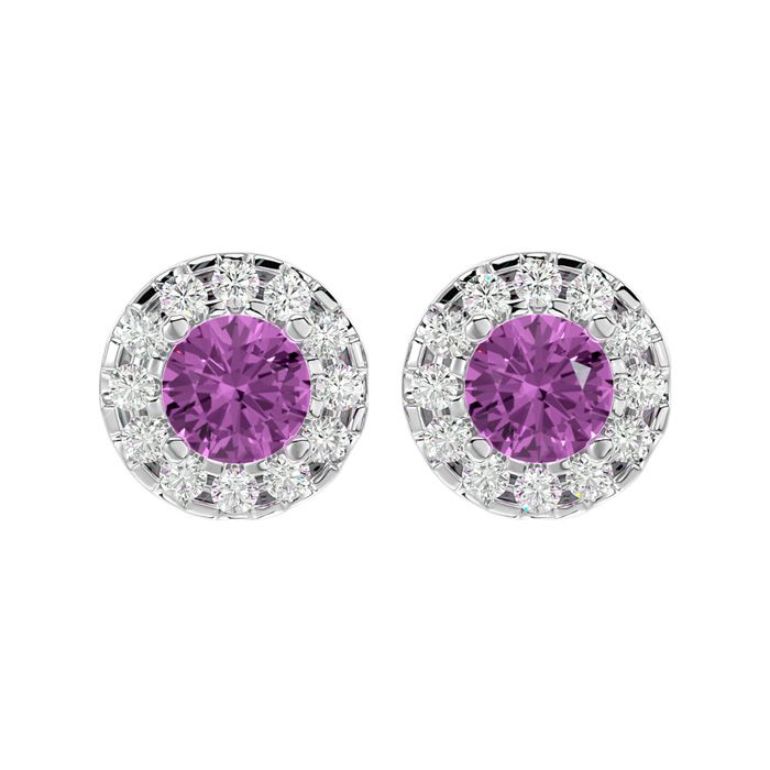 1 Carat Pink Topaz and Halo Diamond Stud Earrings In 14 Karat White Gold