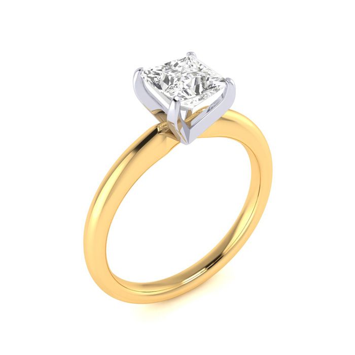 1 Carat Natural Princess Cut Diamond Solitaire Engagement Ring In 14K Yellow Gold