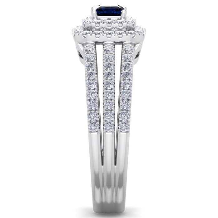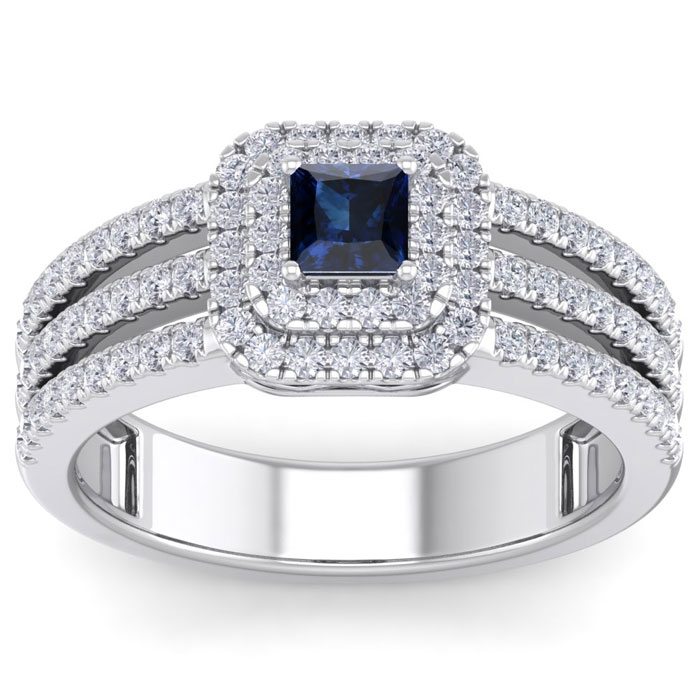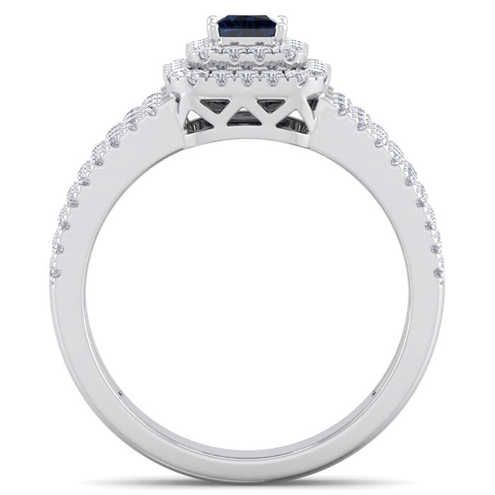 1 Carat Princess Shape Double Halo Sapphire and Diamond Engagement Ring In 14 Karat White Gold