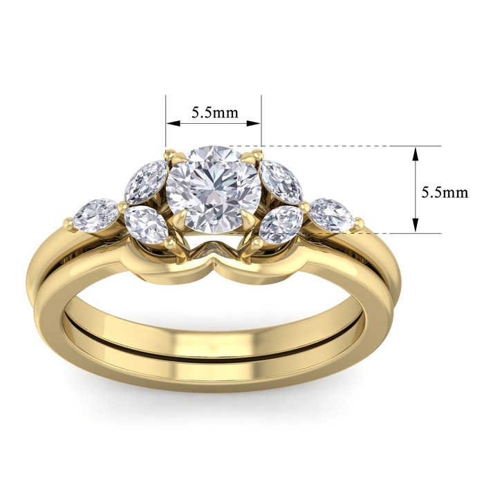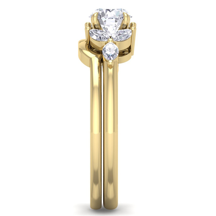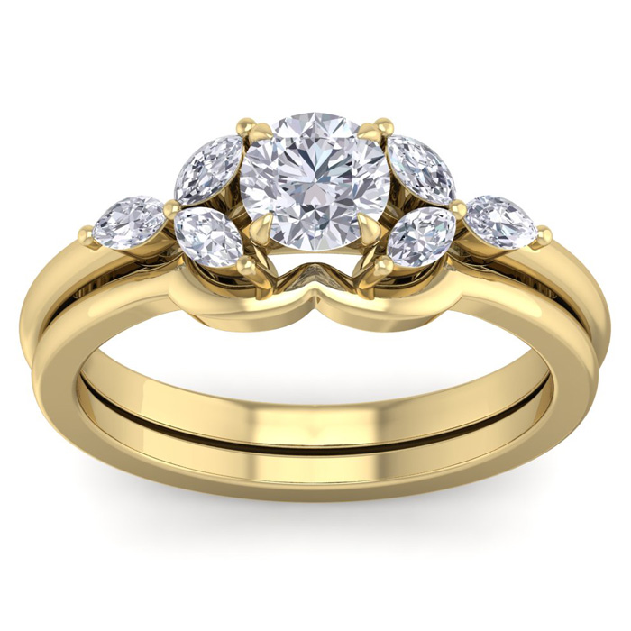 1 Carat Natural Round and Marquise Diamond Bridal Set In 14 Karat Yellow Gold