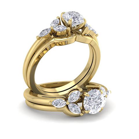 1 Carat Natural Round and Marquise Diamond Bridal Set In 14 Karat Yellow Gold