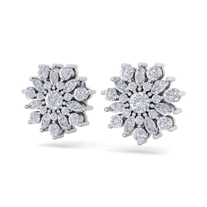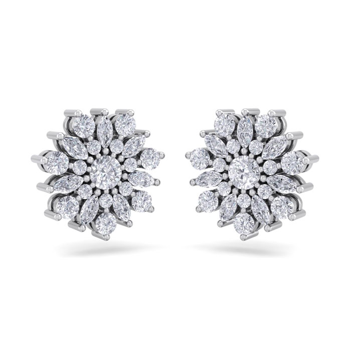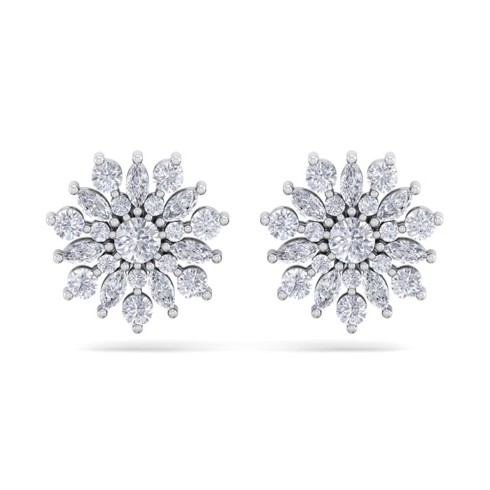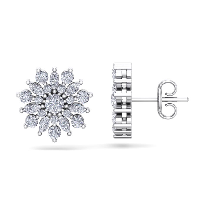 1 Carat Natural Round Diamond Flower Stud Earrings In 14 Karat White Gold