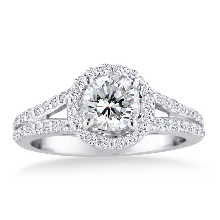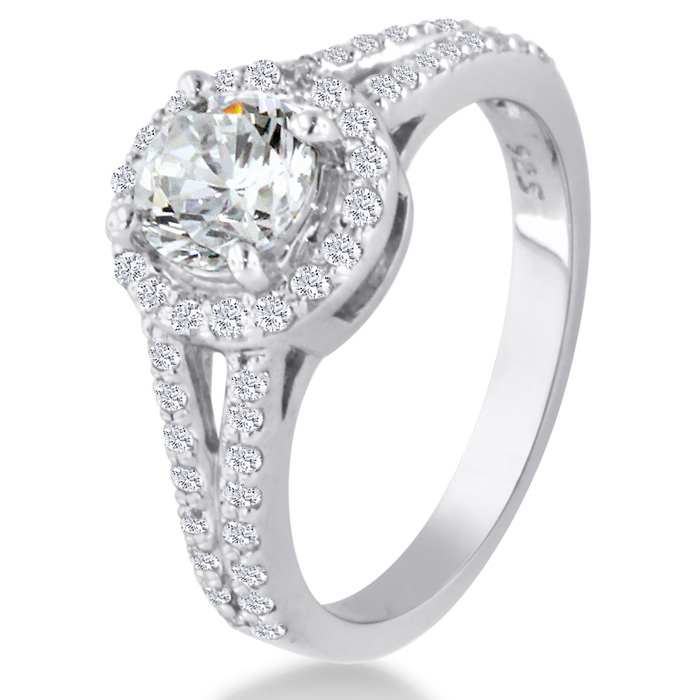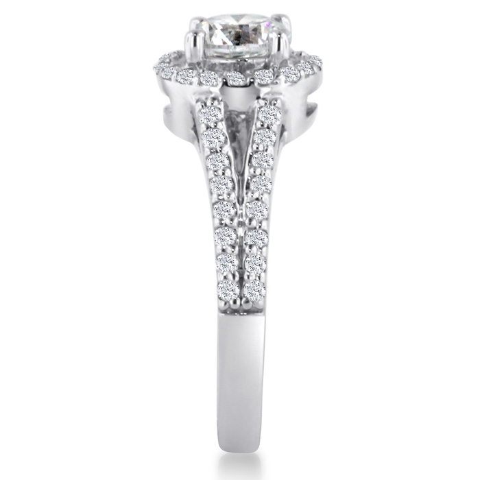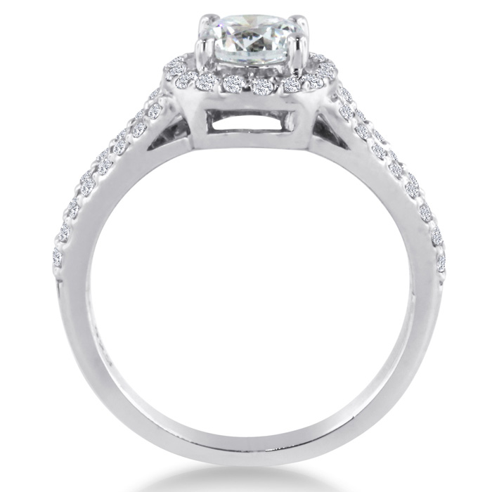 This simple halo setting with a split shank is absolutely stunning, very flashy but still very dainty!