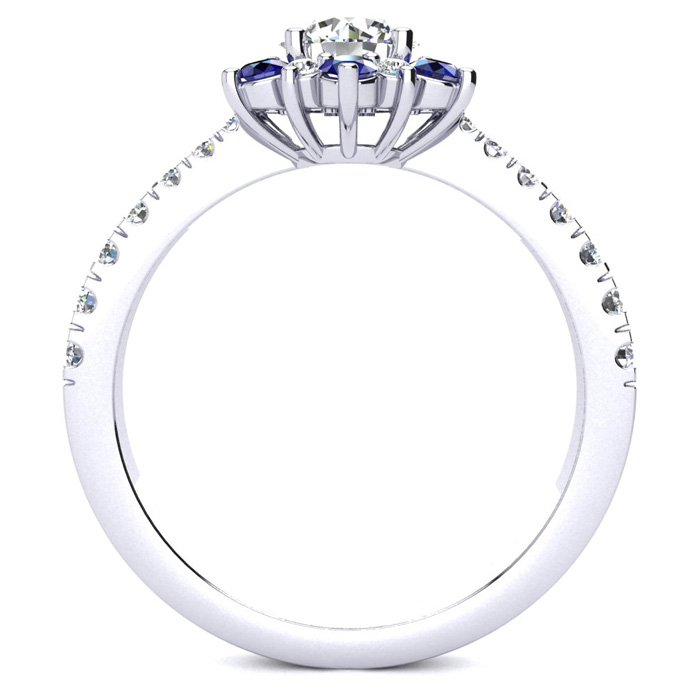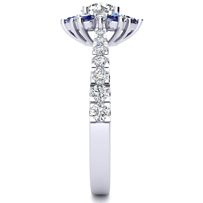 1 Carat Natural Round Shape Flower Halo Sapphire and Diamond Engagement Ring In 14K White Gold
