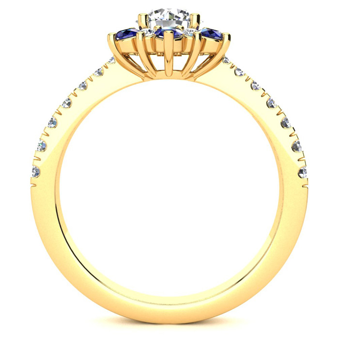 1 Carat Natural Round Shape Flower Halo Sapphire and Diamond Engagement Ring In 14K Yellow Gold