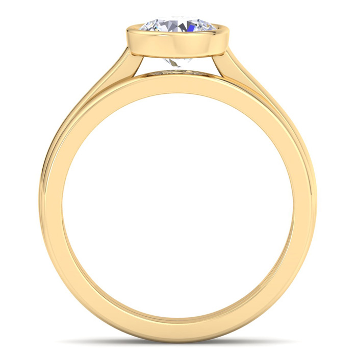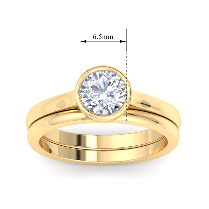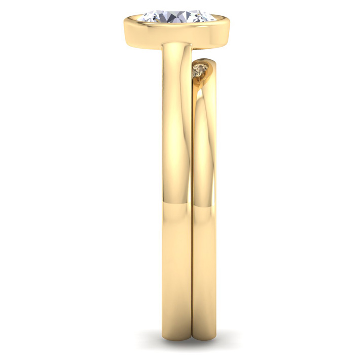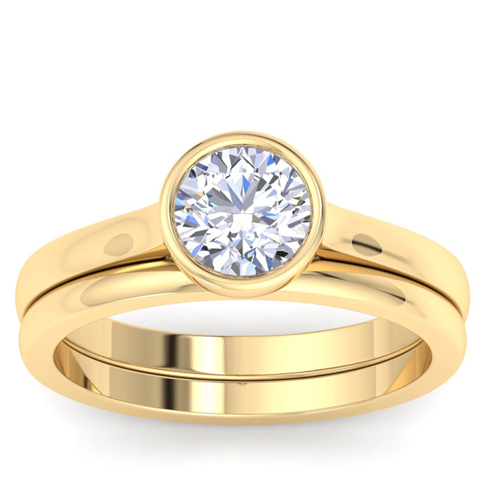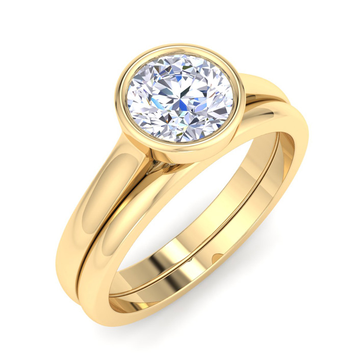 1 Carat Round Shape Lab Grown Diamond Ring With Matching Band In 14K Yellow Gold, Solitaire Bezel Setting