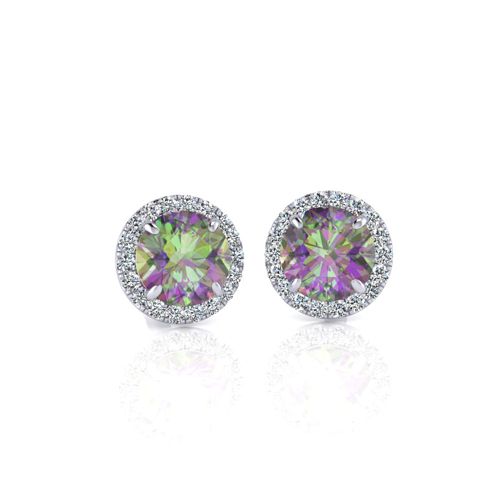 1 Carat Round Shape Mystic Topaz and Halo Diamond Earrings In 14 Karat White Gold