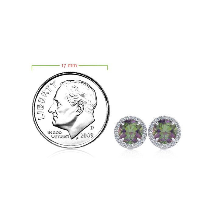 1 Carat Round Shape Mystic Topaz and Halo Diamond Earrings In 14 Karat White Gold