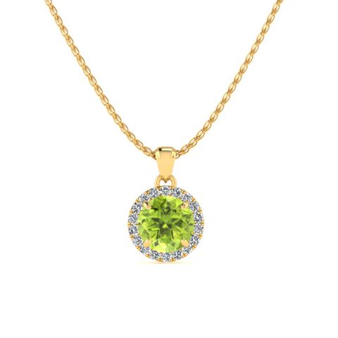 1 Carat Round Shape Peridot and Halo Diamond Necklace In 14 Karat Yellow Gold