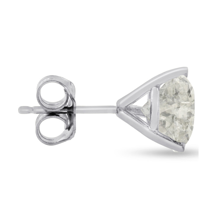 If you are looking for true statement earrings - Well here it is! 1 Carat Round Diamond Stud Earring. No jewelry store can touch SuperJeweler's prices on diamonds, and definitely not on Clarity Enhanced Diamonds. These diamonds are hand selected by our experts in Ramat-Gan, Israel for maximum fire, then enhanced to make them even better. Yes you can get a 1 Carat Round Cut Earring at the amazing price above. The diamond is J-K color, which is very white and I1-I2 Clarity. Crafted in 14 karat white gold with screw-on screw-off posts. SINGLE STUD ONLY