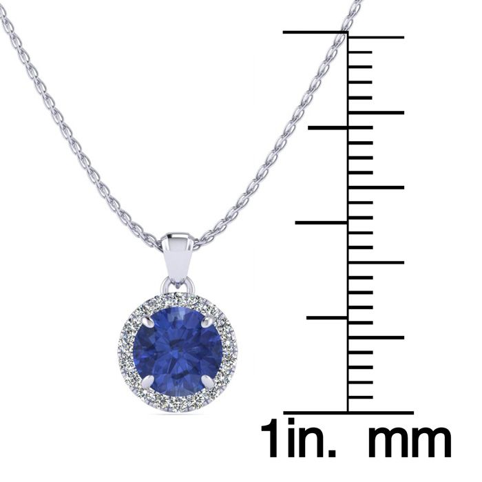 1 Carat Round Shape Tanzanite and Halo Diamond Necklace In 14 Karat White Gold