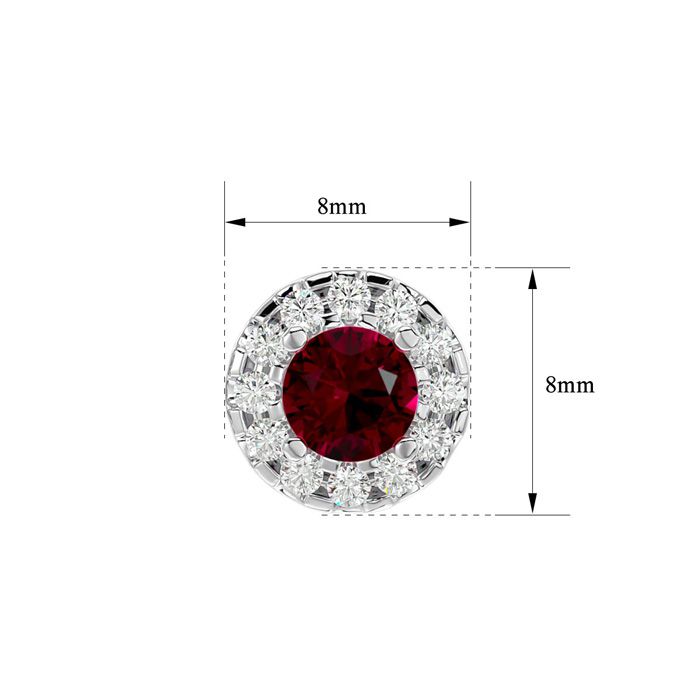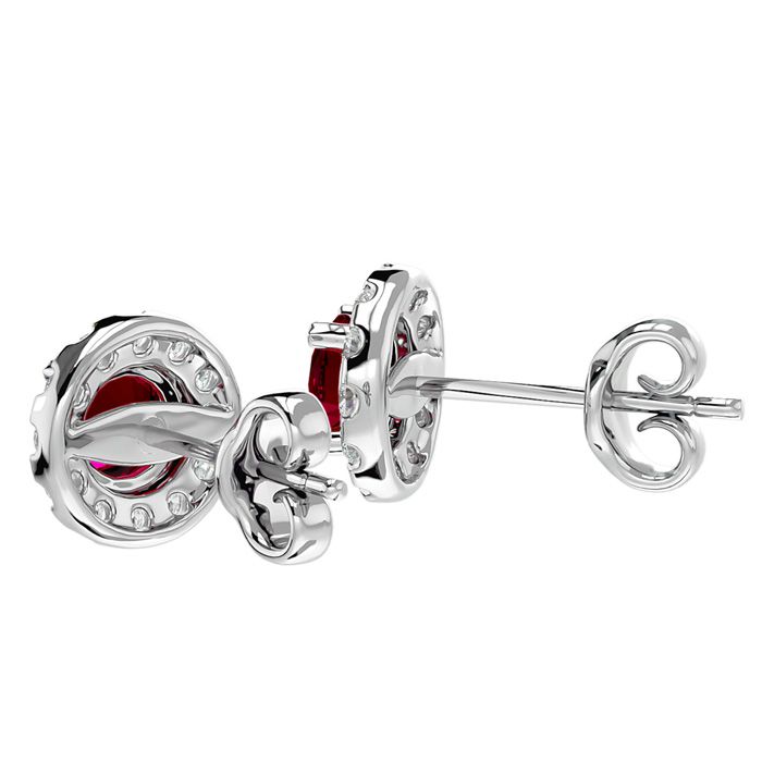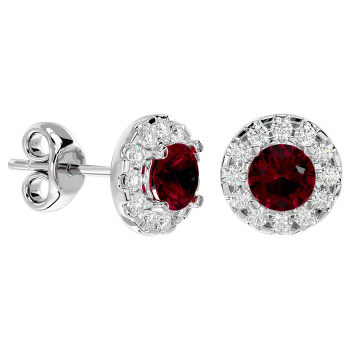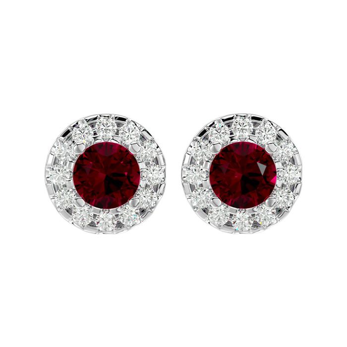 1 Carat Ruby and Halo Diamond Stud Earrings In 14 Karat White Gold