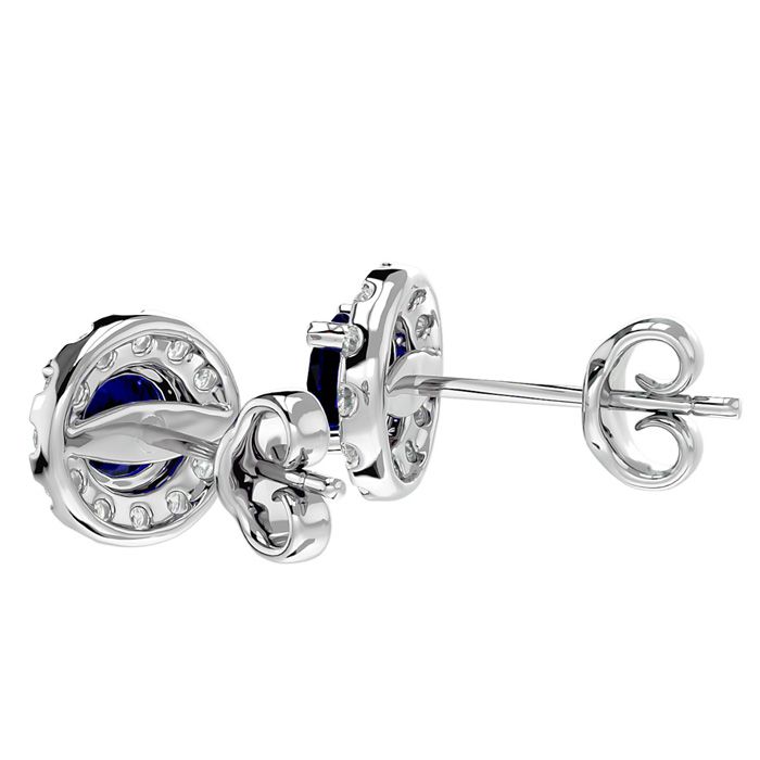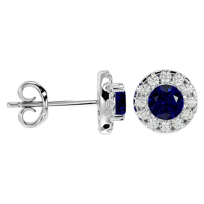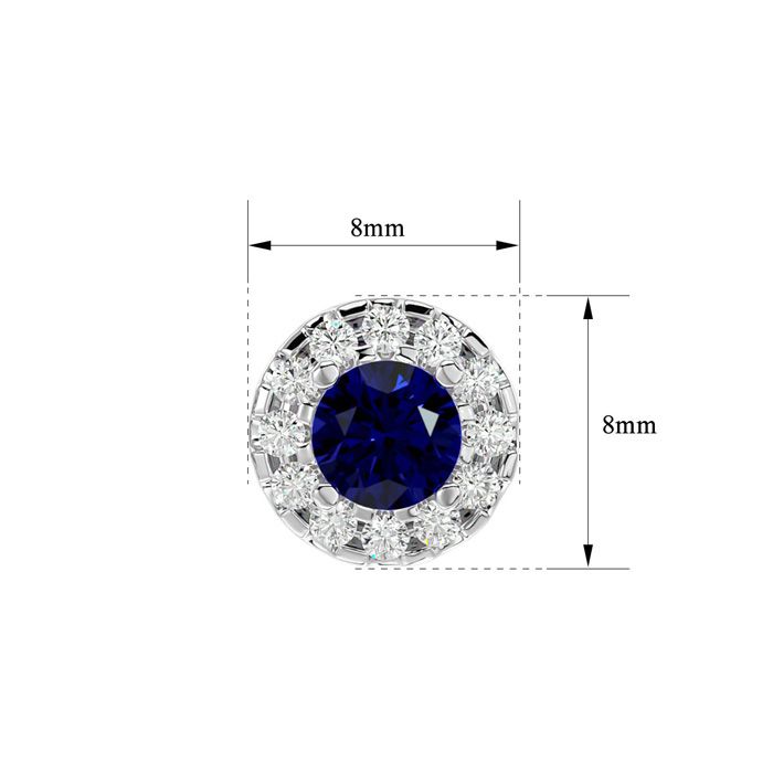 1 Carat Sapphire and Halo Diamond Stud Earrings In 14 Karat White Gold