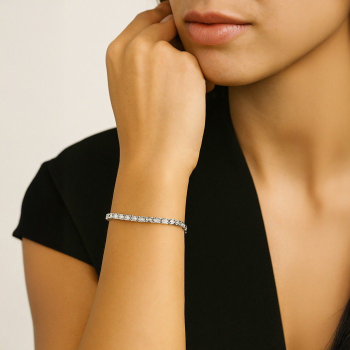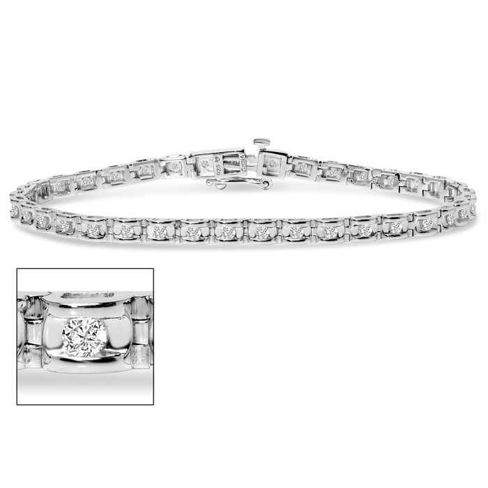 1 Carat Single Row Diamond Bracelet In Sterling Silver, 7 Inches