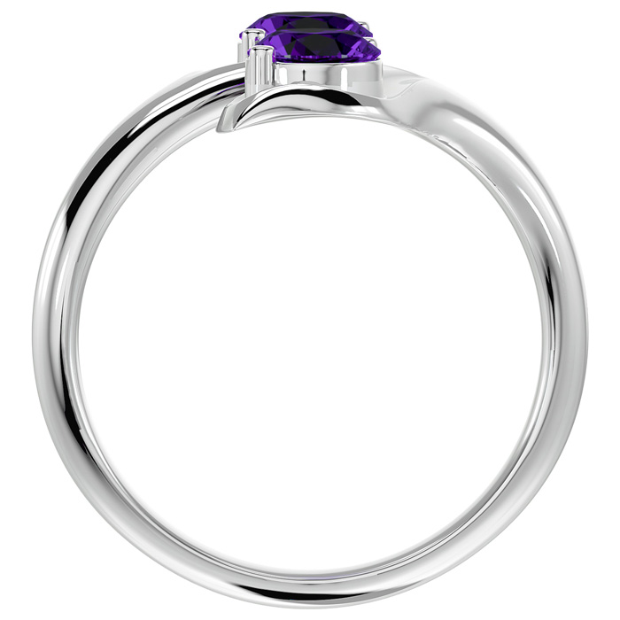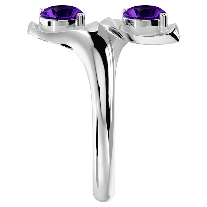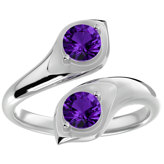 This elegant gemstone ring features two 5mm round shape amethyst gemstones each weighing approximately 1/2 carat. Total carat weight is approximately 1 carat. This ring is in 14 karat white gold.