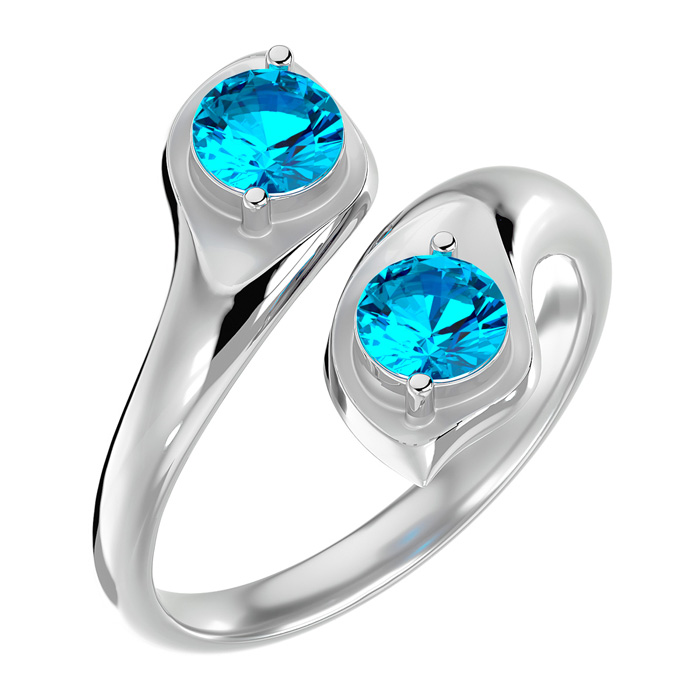 Retrograde Birthstones™ 1 Carat Two Stone Blue Topaz Ring In 14 Karat White Gold