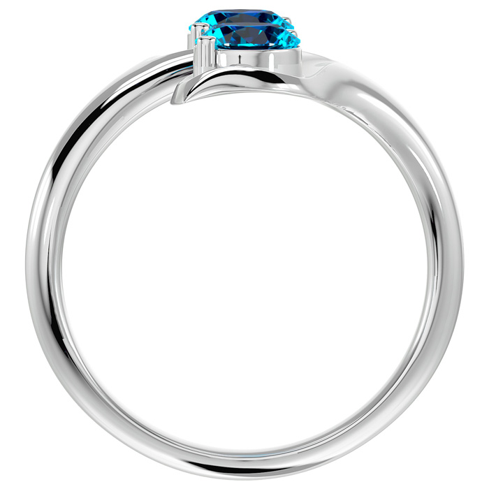 This elegant gemstone ring features two 5mm round shape blue topaz gemstones each weighing approximately 1/2 carat. Total carat weight is approximately 1 carat. This ring is in 14 karat white gold. *Retrograde Birthstones™ flips the idea of traditional birthstones. Wear your ½ birthday birthstone, your Retrograde Birthstone, “The Birthstone For Your Bad Side™.