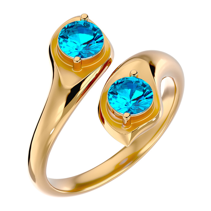 1 Carat Two Stone Blue Topaz Ring In 14 Karat Yellow Gold