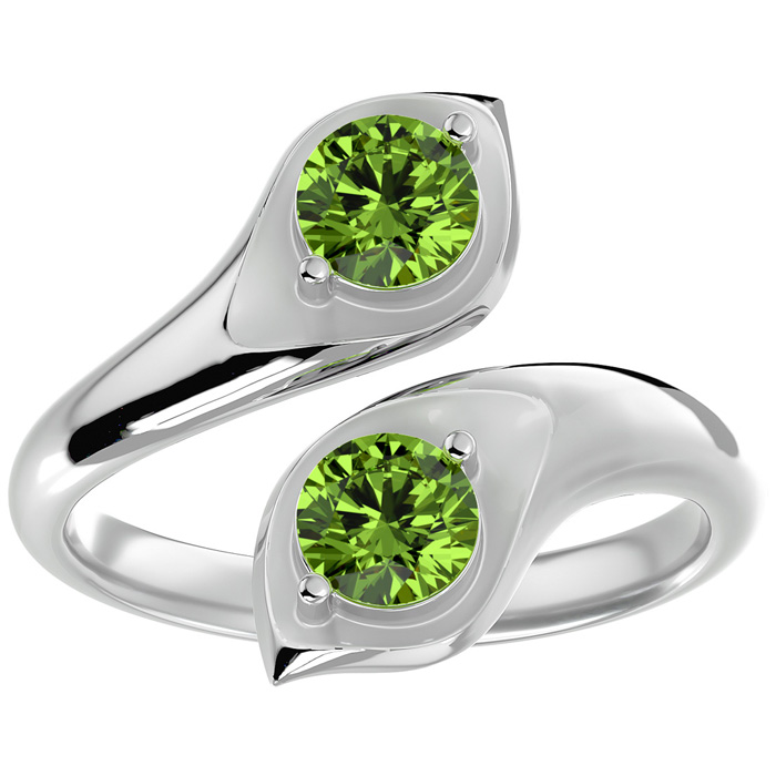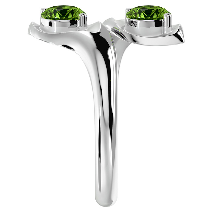 Retrograde Birthstones™ 1 Carat Two Stone Peridot Ring In 14 Karat White Gold