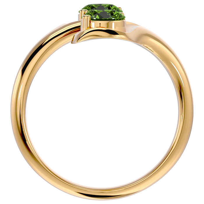 This elegant gemstone ring features two 5mm round shape peridot gemstones each weighing approximately 1/2 carat. Total carat weight is approximately 1 carat. This ring is in 14 karat yellow gold. *Retrograde Birthstones™ flips the idea of traditional birthstones. Wear your ½ birthday birthstone, your Retrograde Birthstone, “The Birthstone For Your Bad Side™.