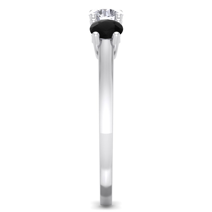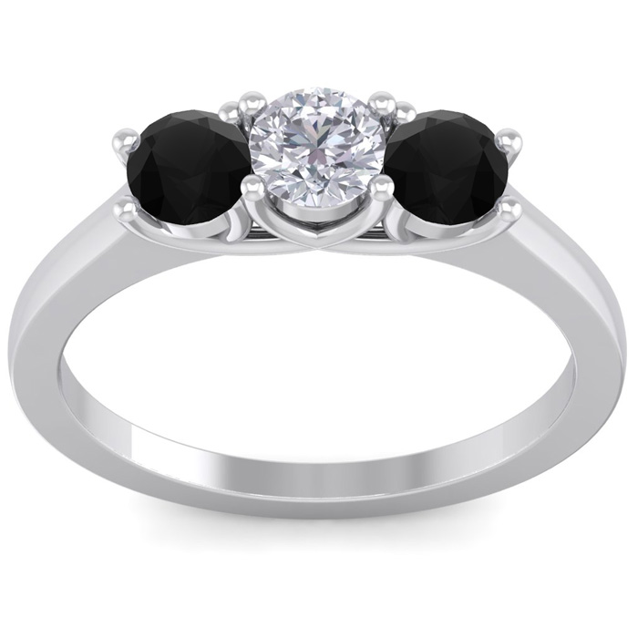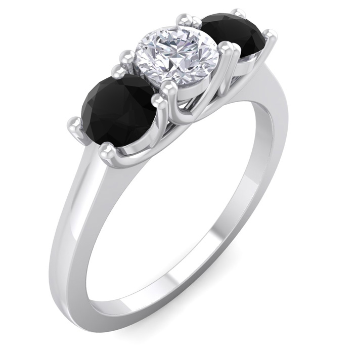 1 Carat White and Black Diamond Three Diamond Ring In 14 Karat White Gold