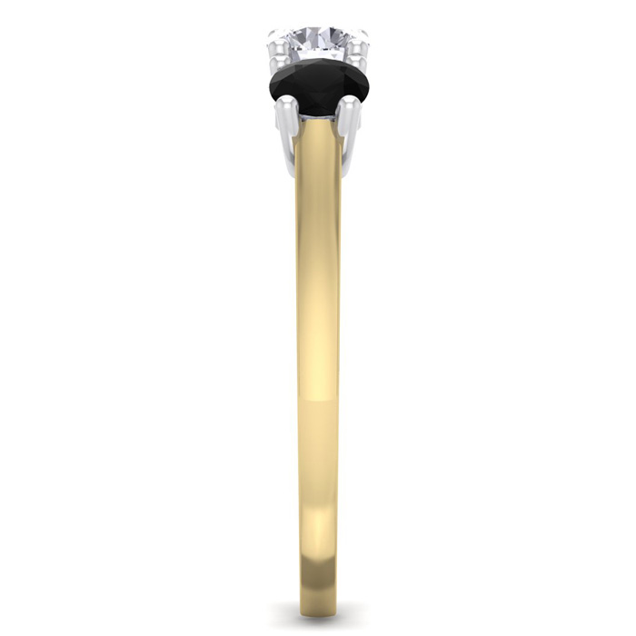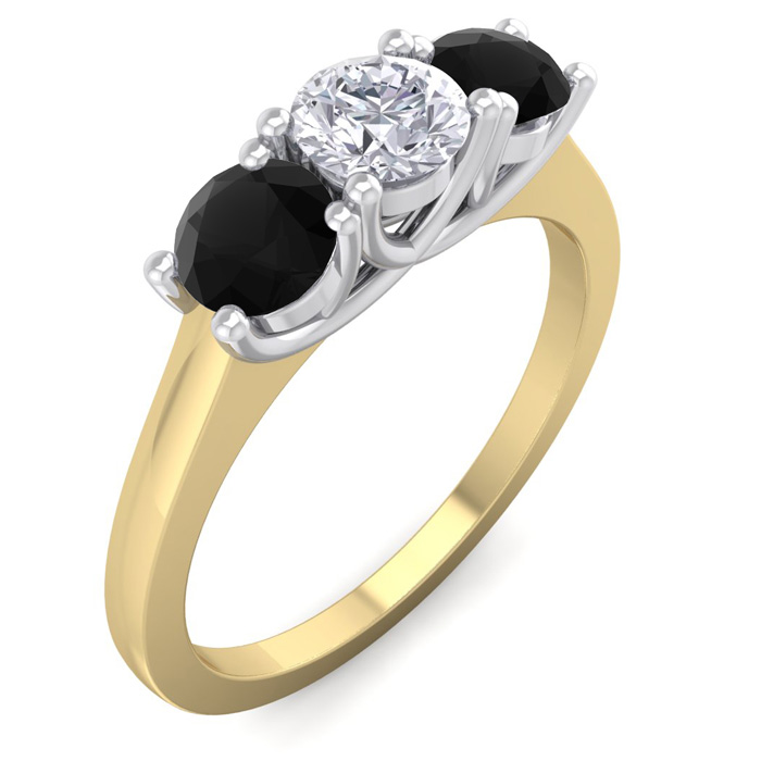 1 Carat White and Black Diamond Three Diamond Ring In 14 Karat Yellow Gold