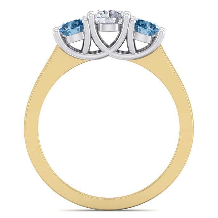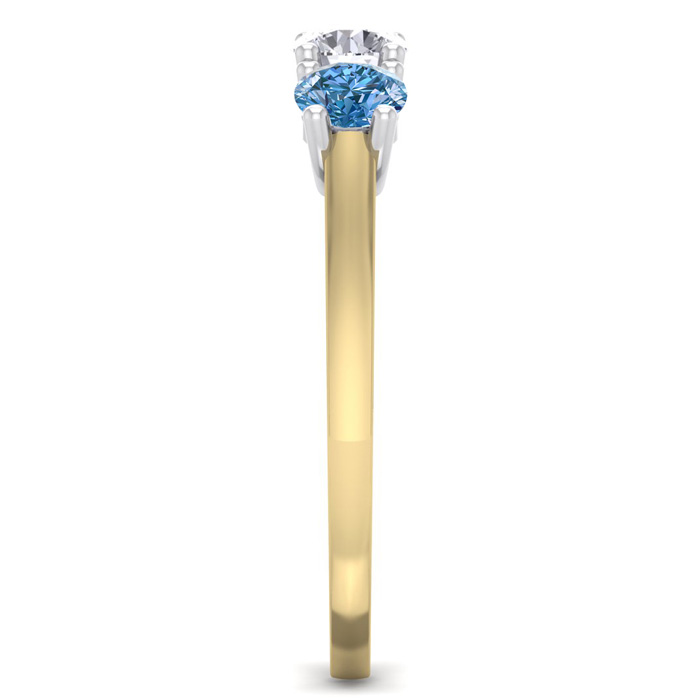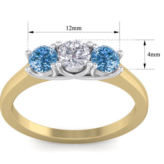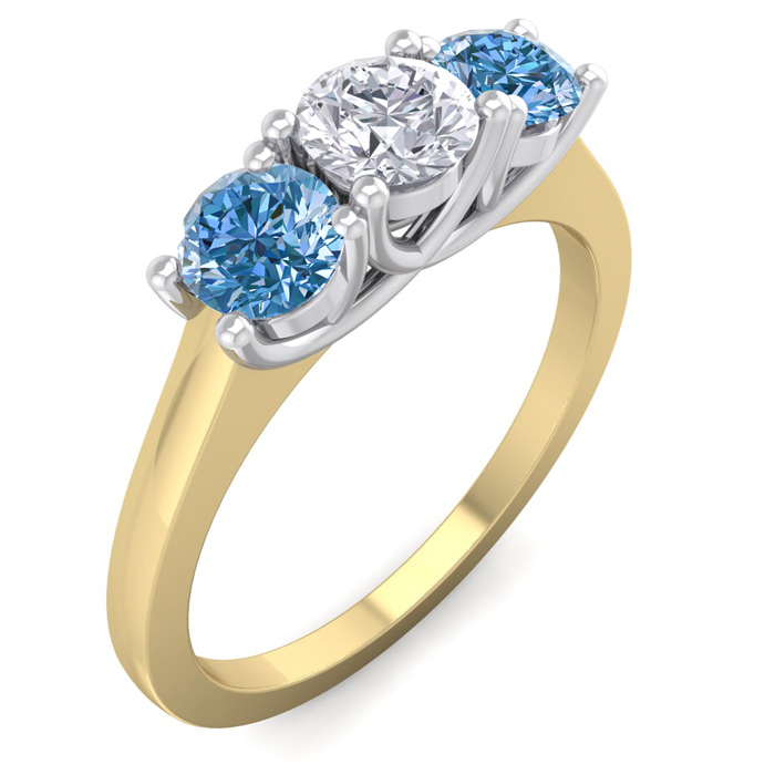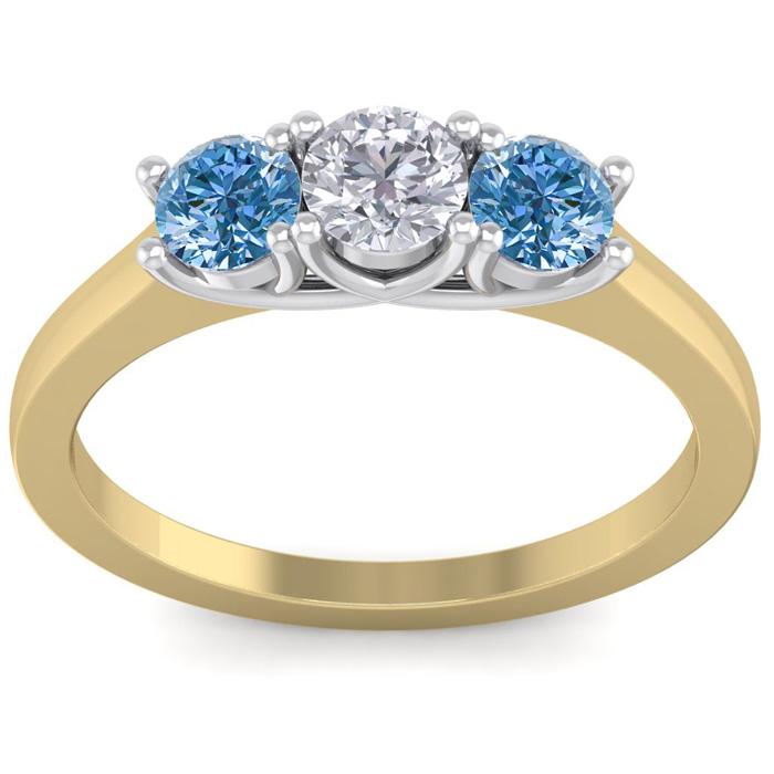 1 Carat White and Blue Diamond Three Diamond Ring In 14 Karat Yellow Gold