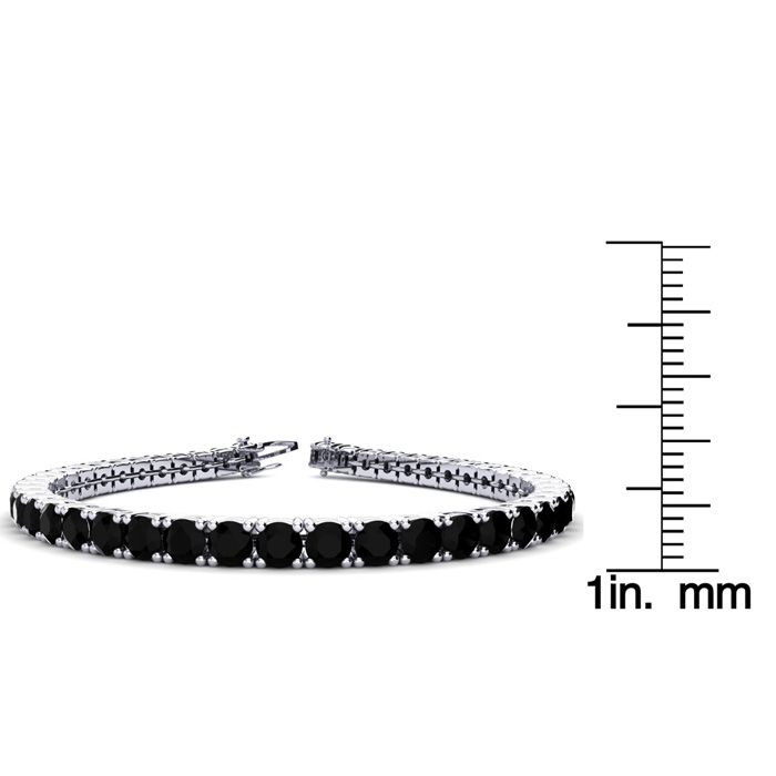 This classic gemstone bracelet features shimmering black diamonds in I3 clarity. The 6 inch bracelet contains 39 black diamonds at 7.80 carats. The 6.5 inch bracelet contains 42 black diamonds at 8.60 carats. The 7 inch bracelet contains 45 black diamonds at 9.20 carats. The 7.5 inch bracelet contains 49 black diamonds at 9.80 carats. The 8 inch bracelet contains 53 black diamonds at 10.60 carats. The 8.5 inch bracelet contains 56 black diamonds at 11.20 carats. The 9 inch bracelet contains 59 black diamonds at 11.80 carats. This bracelet is approximately 3.8mm wide and is crafted in 14 karat white gold. This bracelet has a secure, box with tongue and safety clasp.