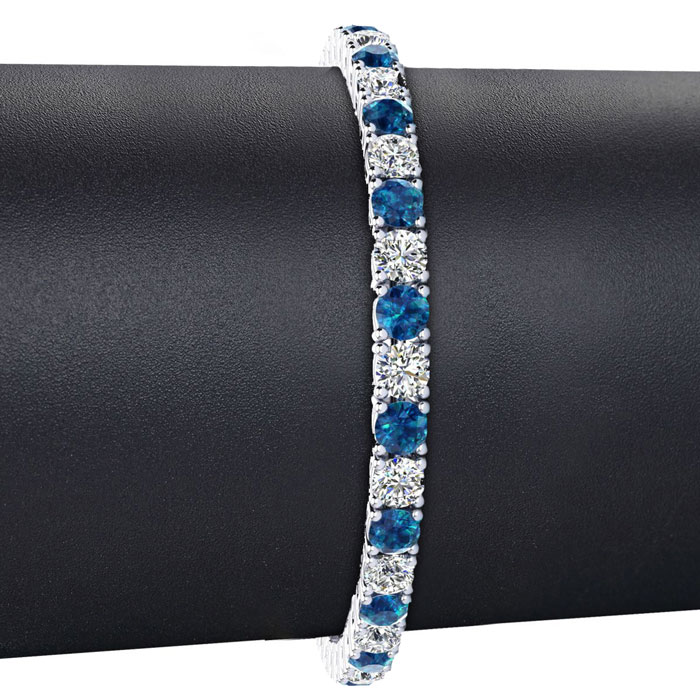 10 1/2 Carat Blue and White Diamond Mens Tennis Bracelet In 14 Karat White Gold, 8 Inches
