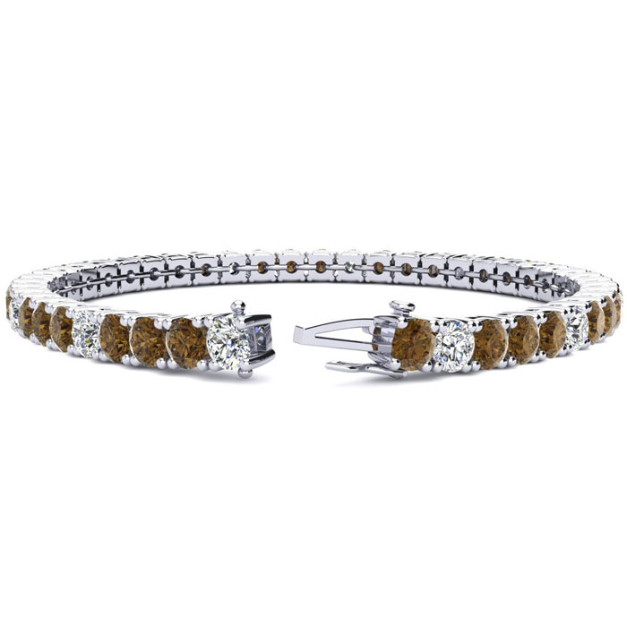10 1/2 Carat Chocolate Bar Brown Champagne and White Diamond Alternating Mens Tennis Bracelet In 14 Karat White Gold, 8 Inches