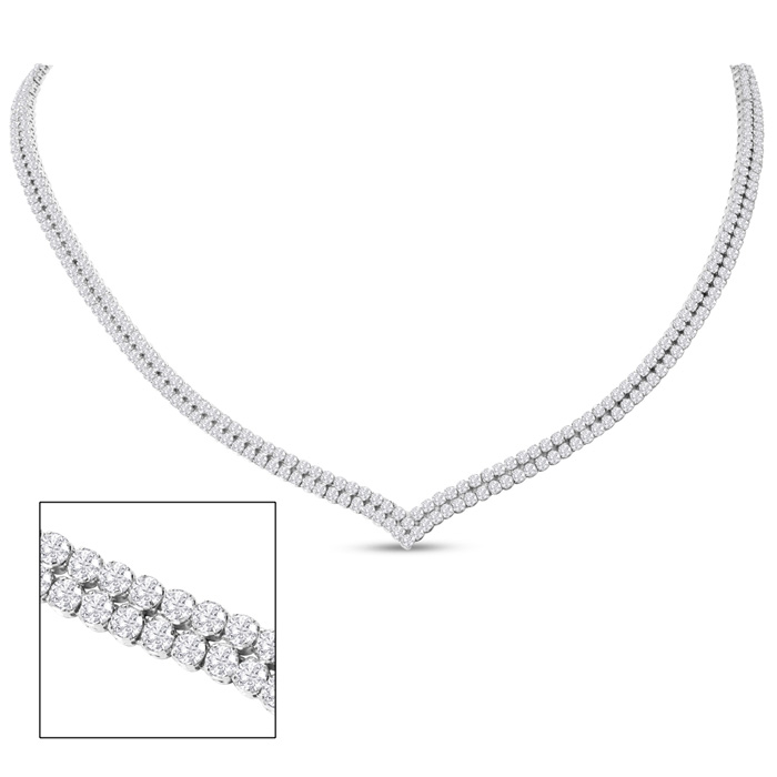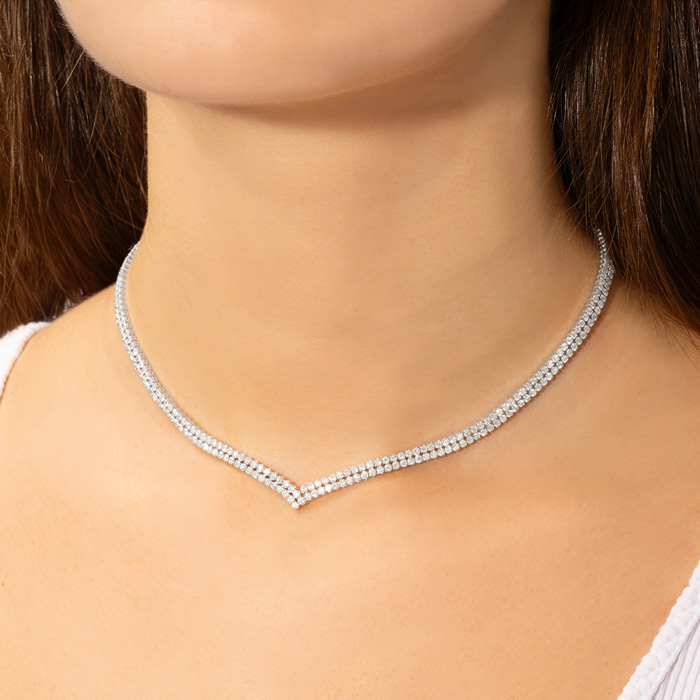 10 Carat Lab Grown Diamond Tennis Choker Necklace In 14K White Gold, 15 Inches
