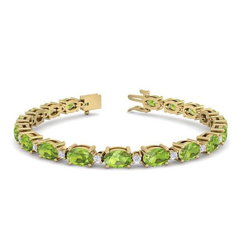 10 Carat Oval Shape Peridot and Diamond Bracelet In 14 Karat Yellow Gold, 7 Inches