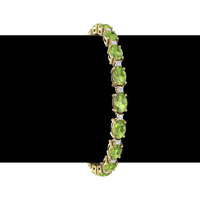 10 Carat Oval Shape Peridot and Diamond Bracelet In 14 Karat Yellow Gold, 7 Inches