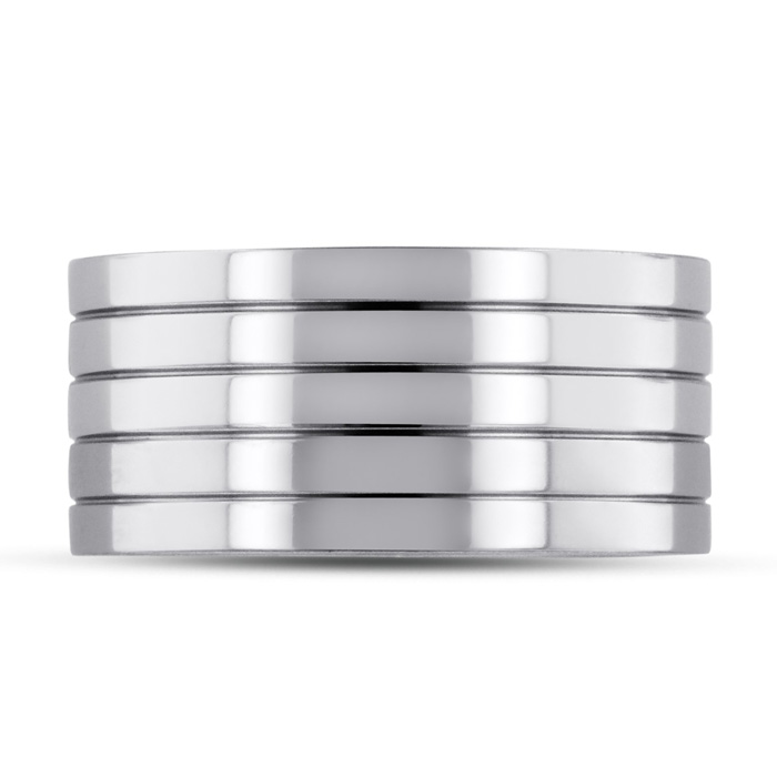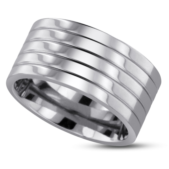 This thick band is sure to call attention to the detail of your ring! Go for a bolder look with this one of a kind, grooved wedding band!
