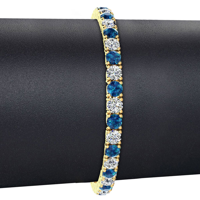 11 1/5 Carat Blue and White Diamond Mens Tennis Bracelet In 14 Karat Yellow Gold, 8 1/2 Inches