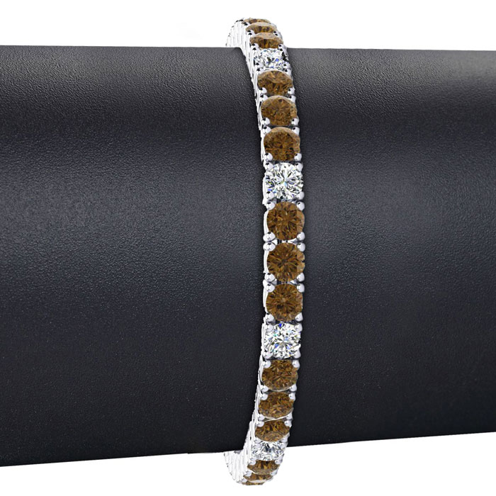 11 1/5 Carat Chocolate Bar Brown Champagne and White Diamond Alternating Mens Tennis Bracelet In 14 Karat White Gold, 8 1/2 Inches